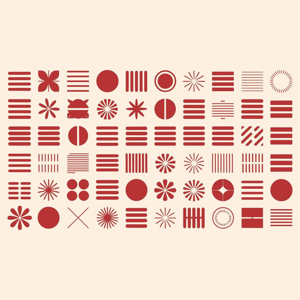 Collection of various red geometric and abstract patterns on a light background shapes Pro Vector