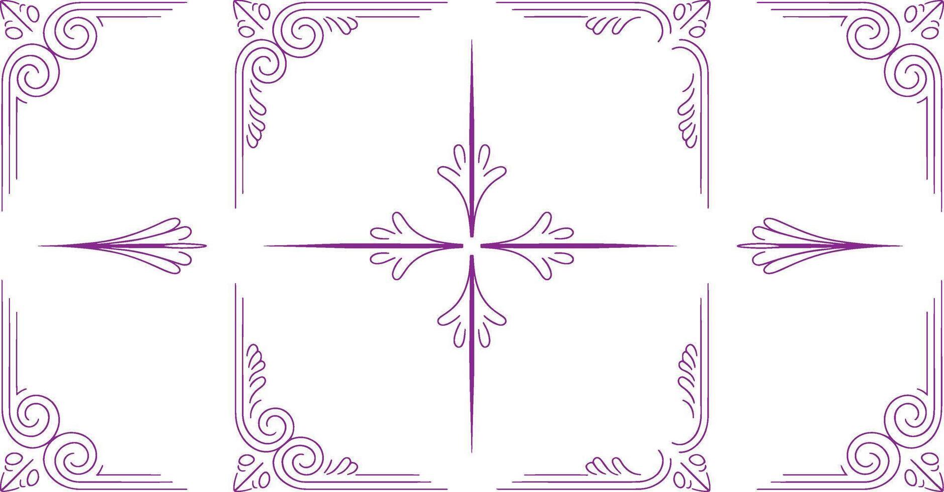 Intricate purple floral and scrollwork pattern on white background with symmetrical Pro Vector