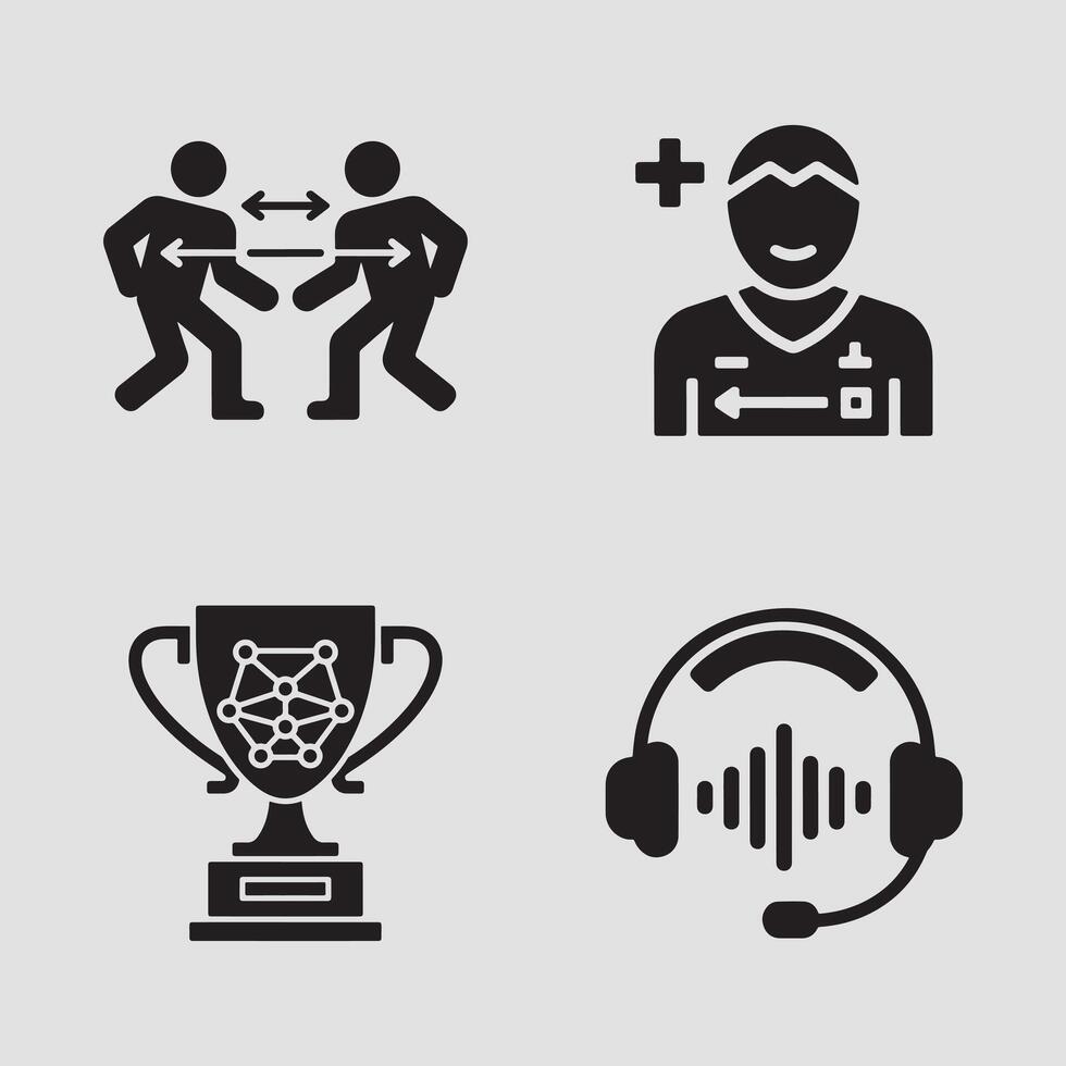 Collection of essential digital icons depicting interaction, user profile, ai success, and audio communication Pro Vector