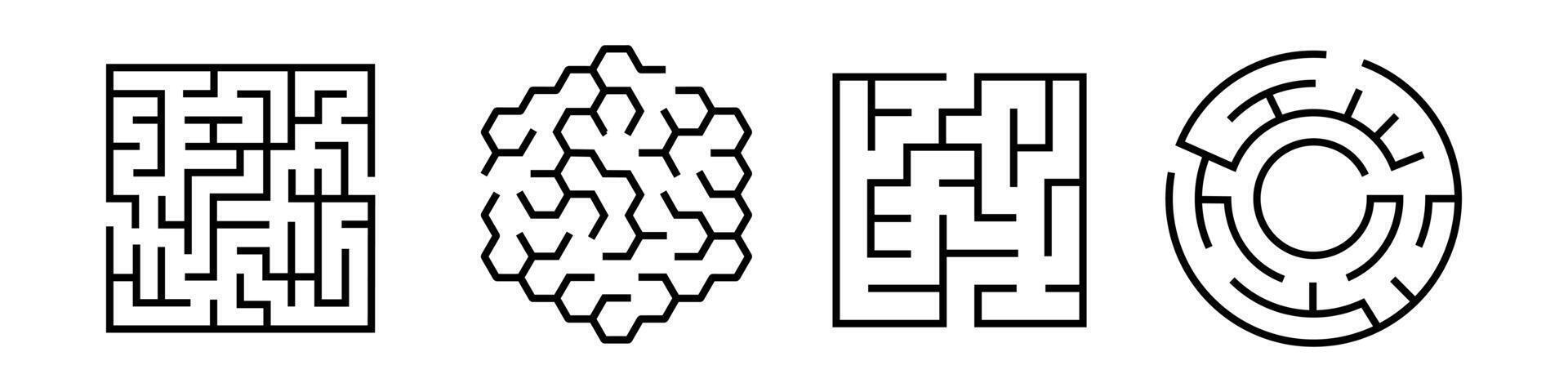 Intricate geometric maze patterns for puzzle design Pro Vector