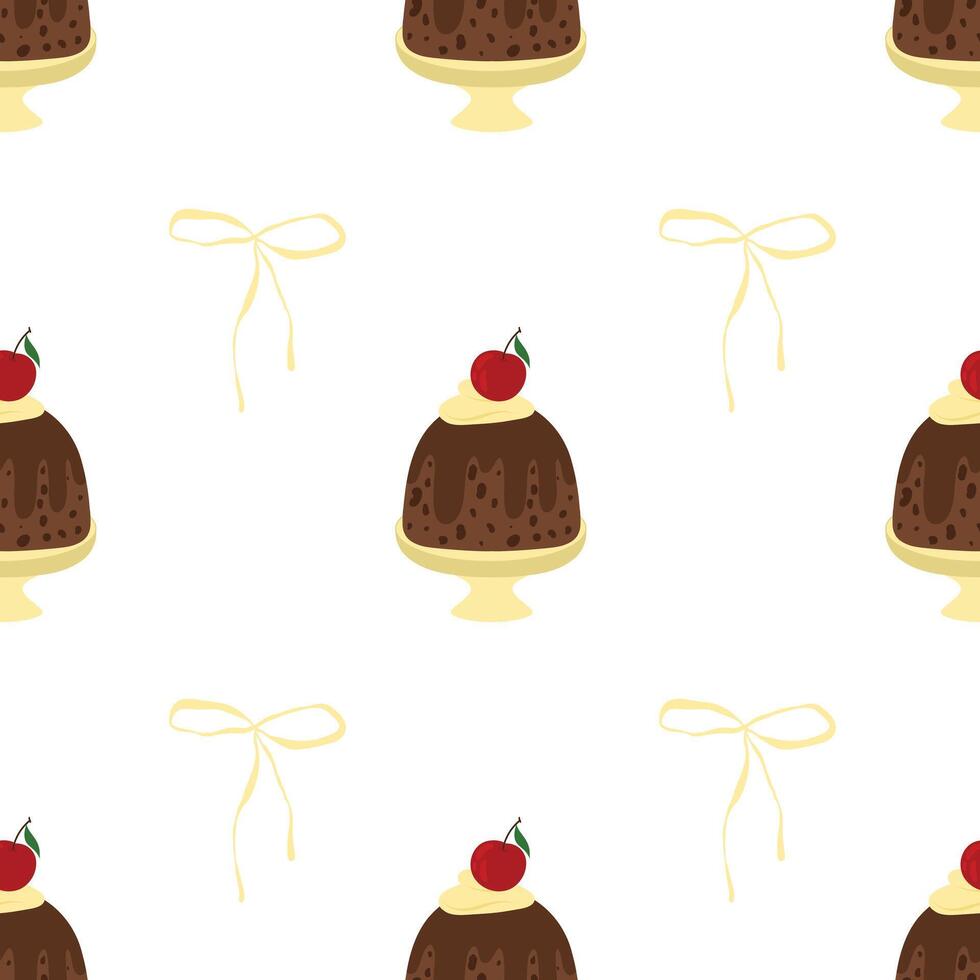 Cupcake seamless pattern, sweet background. Bakery pattern, cupcake print. Dessert repeat pattern, confection textile design Pro Vector