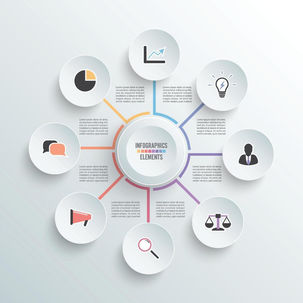 Vector illustration infographics. Business concept with 8 options. For content, diagram, flowchart, steps, parts, timeline infographics, workflow, chart. Pro Vector