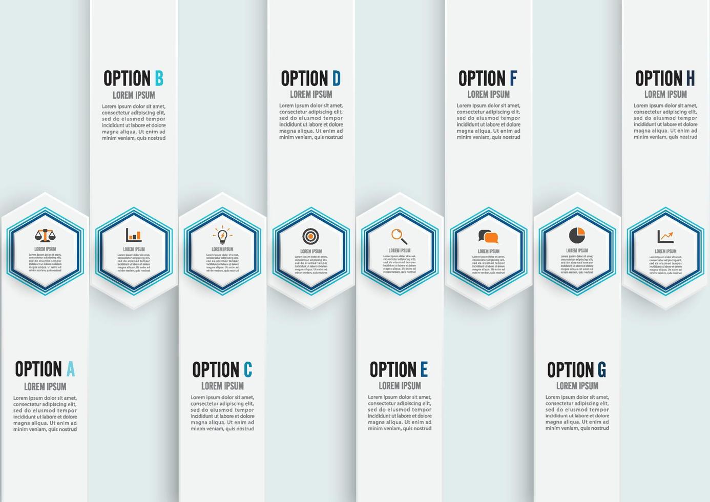 Vector infographic template with 3D paper label, integrated circles. Business concept with 8 options. For content, diagram, flowchart, steps, parts, timeline infographics. Pro Vector