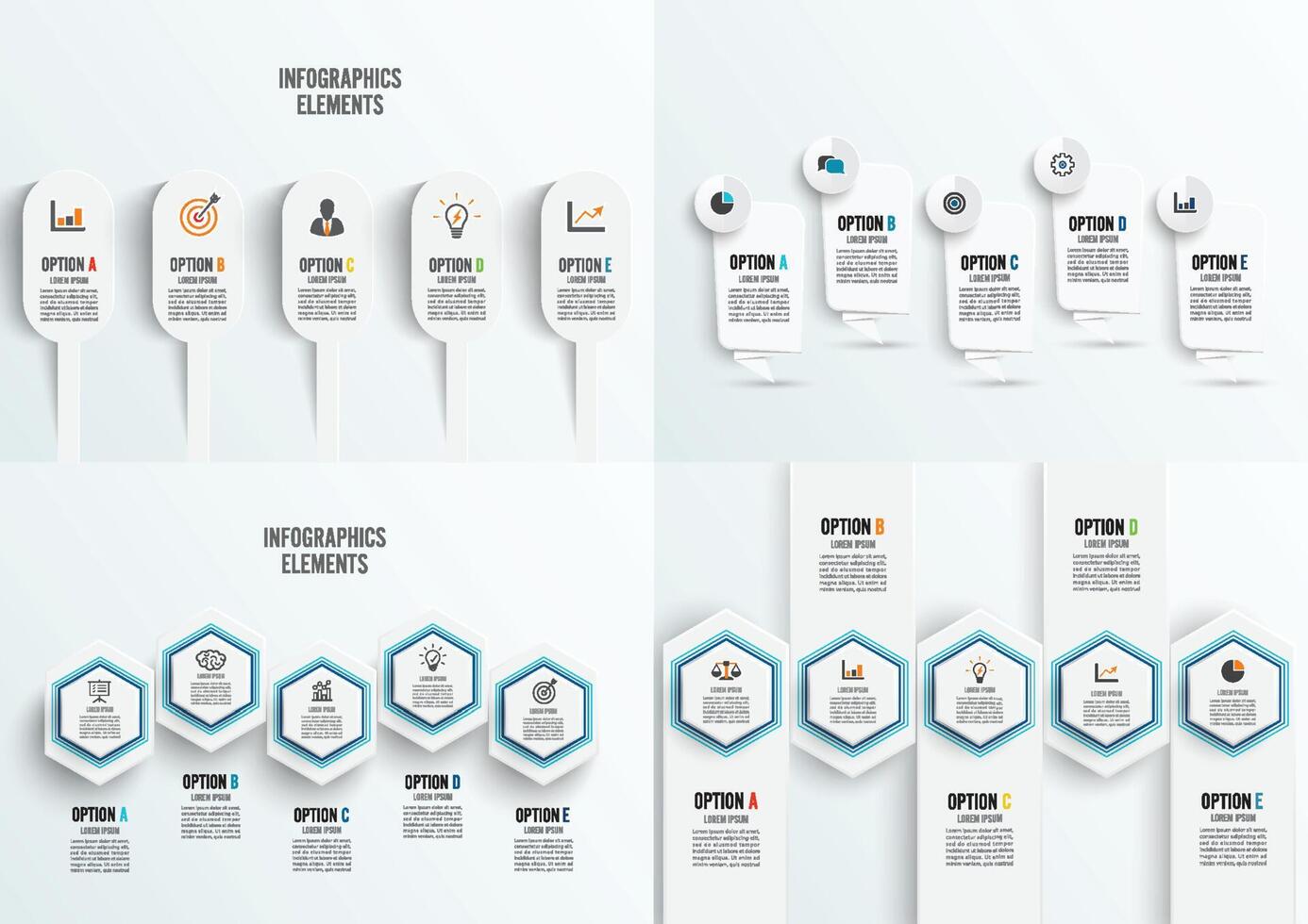 Set vector infographic template with 3D paper label, integrated circles. Business concept with 5 options. For content, diagram, flowchart, steps, parts, timeline infographics. Pro Vector