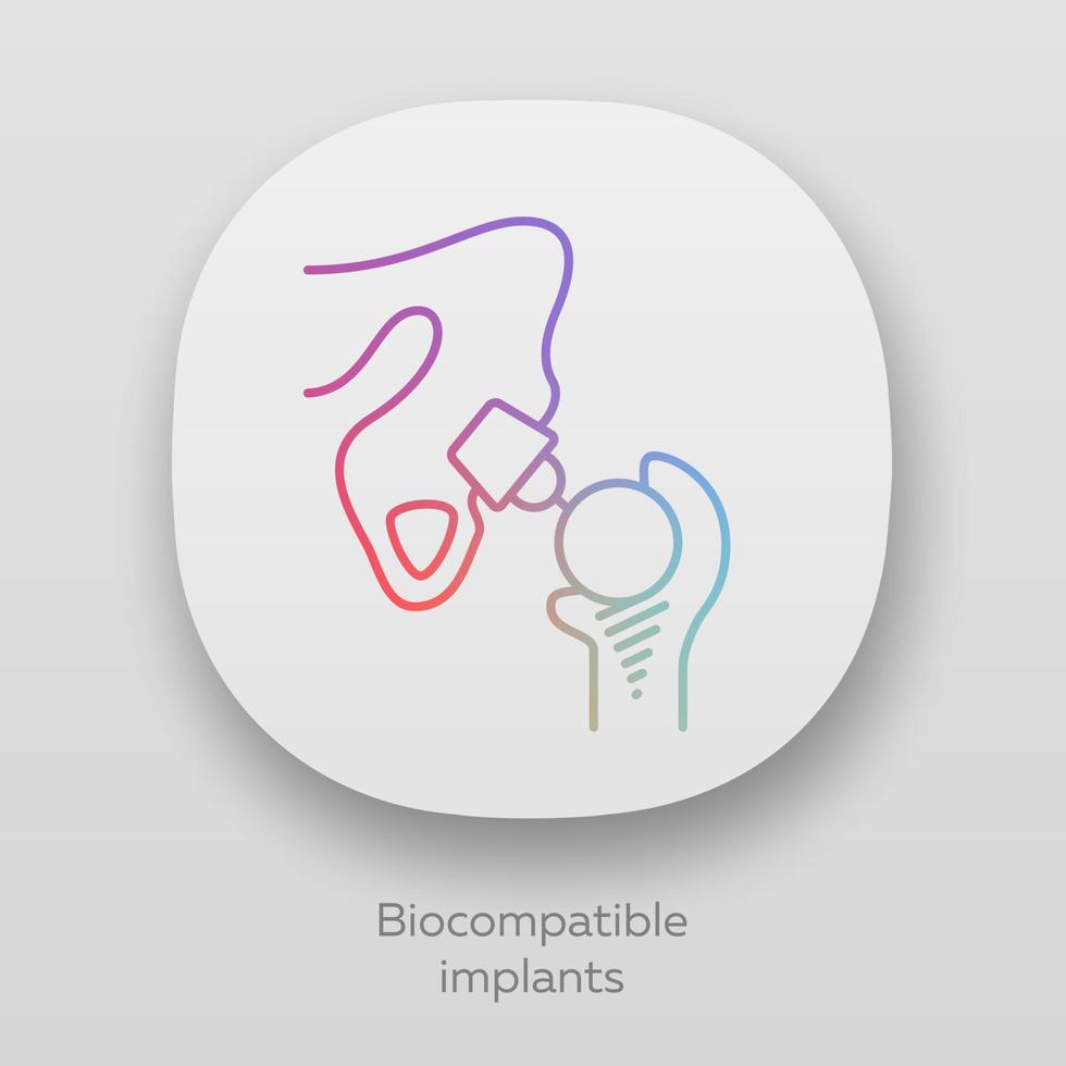 Biocompatible implants app icon. Compatible with living tissue material. Artificial joint. Bioengineering. UI UX user interface. Web or mobile applications. Vector isolated illustrations Pro Vector