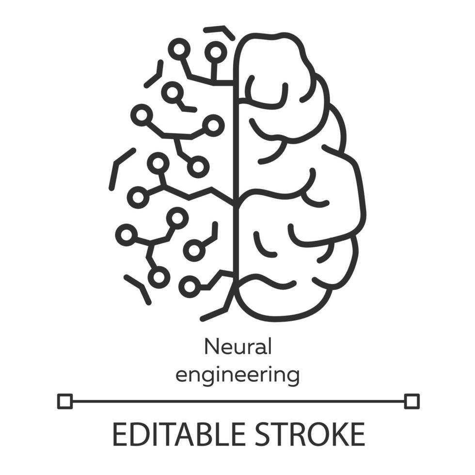 Neural engineering linear icon. Neuroengineering. Biomedical engineering. Bioinformatics. Biotechnology. Thin line illustration. Contour symbol. Vector isolated outline drawing. Editable stroke Pro Vector