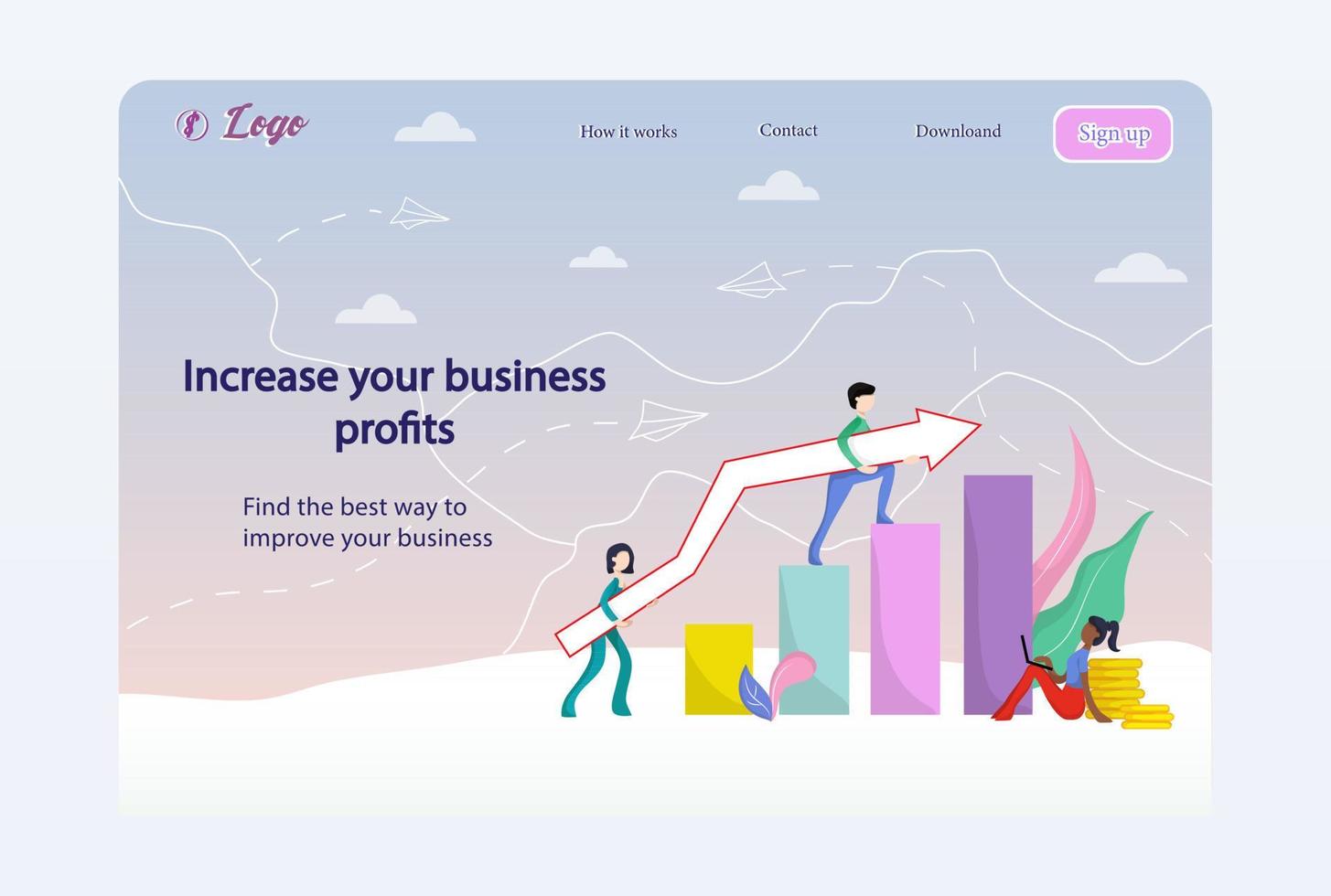 Home page website business performance improvement. Success and performance improvement. Web page template. Vector Pro Vector