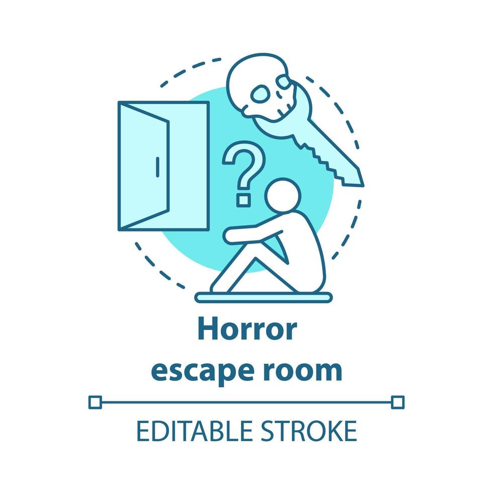 Horror escape room concept icon. Scary quest idea thin line illustration. Thematic strategy game. Looking for exit, key. Finding solution. Vector isolated outline drawing. Editable stroke Pro Vector