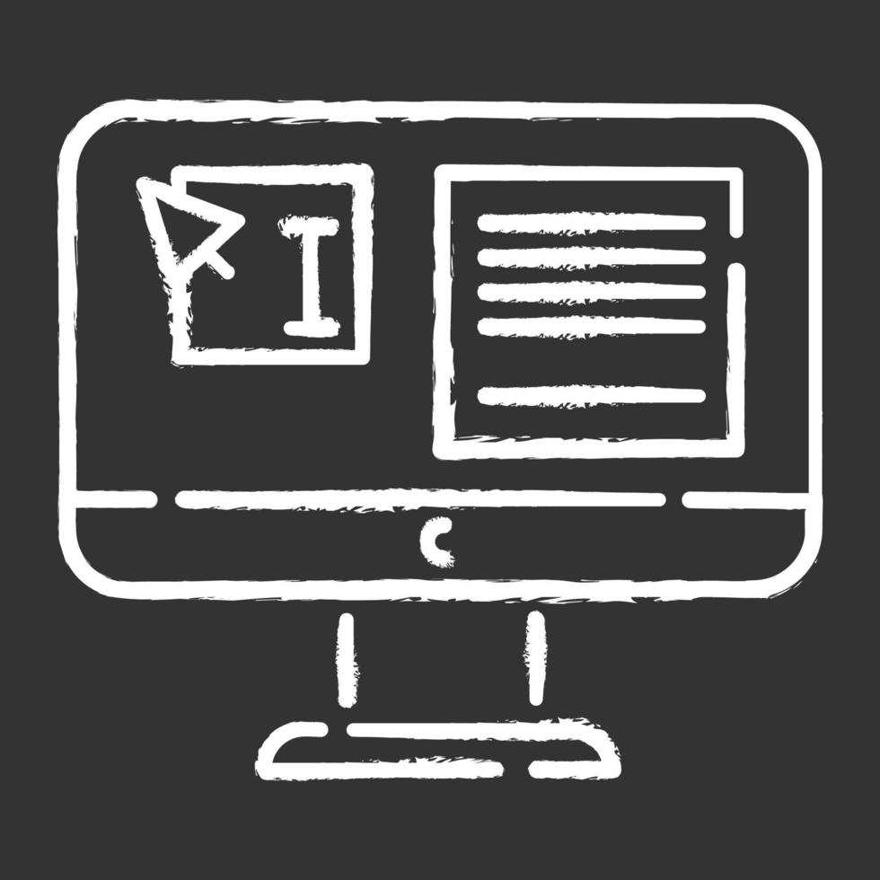 Website localization, DTP services chalk icon. Text editing, mistake correction. Document page layout. Graphic processing. Website localization. Isolated vector chalkboard illustration Pro Vector