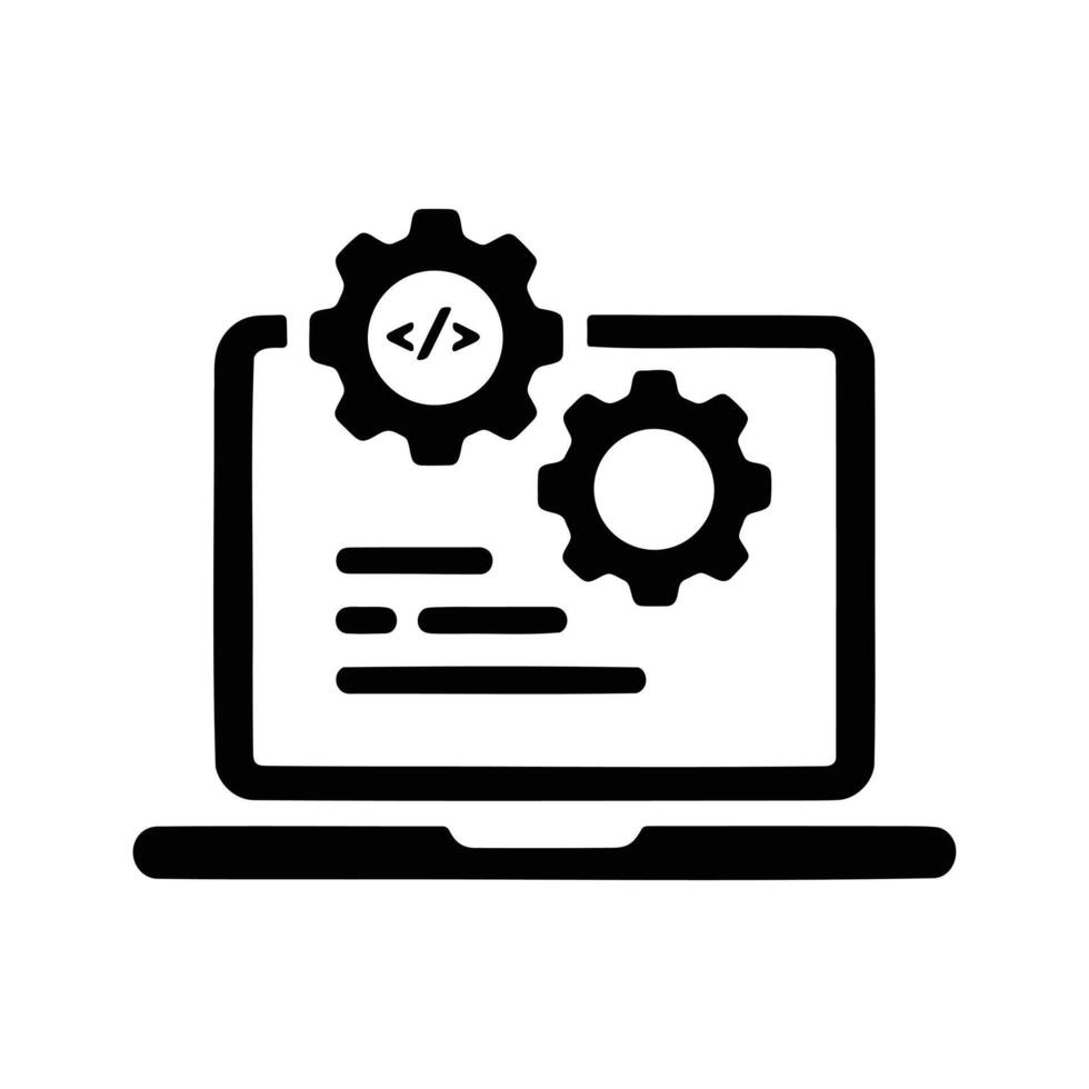 Laptop programming settings icon, software development engineering Pro Vector