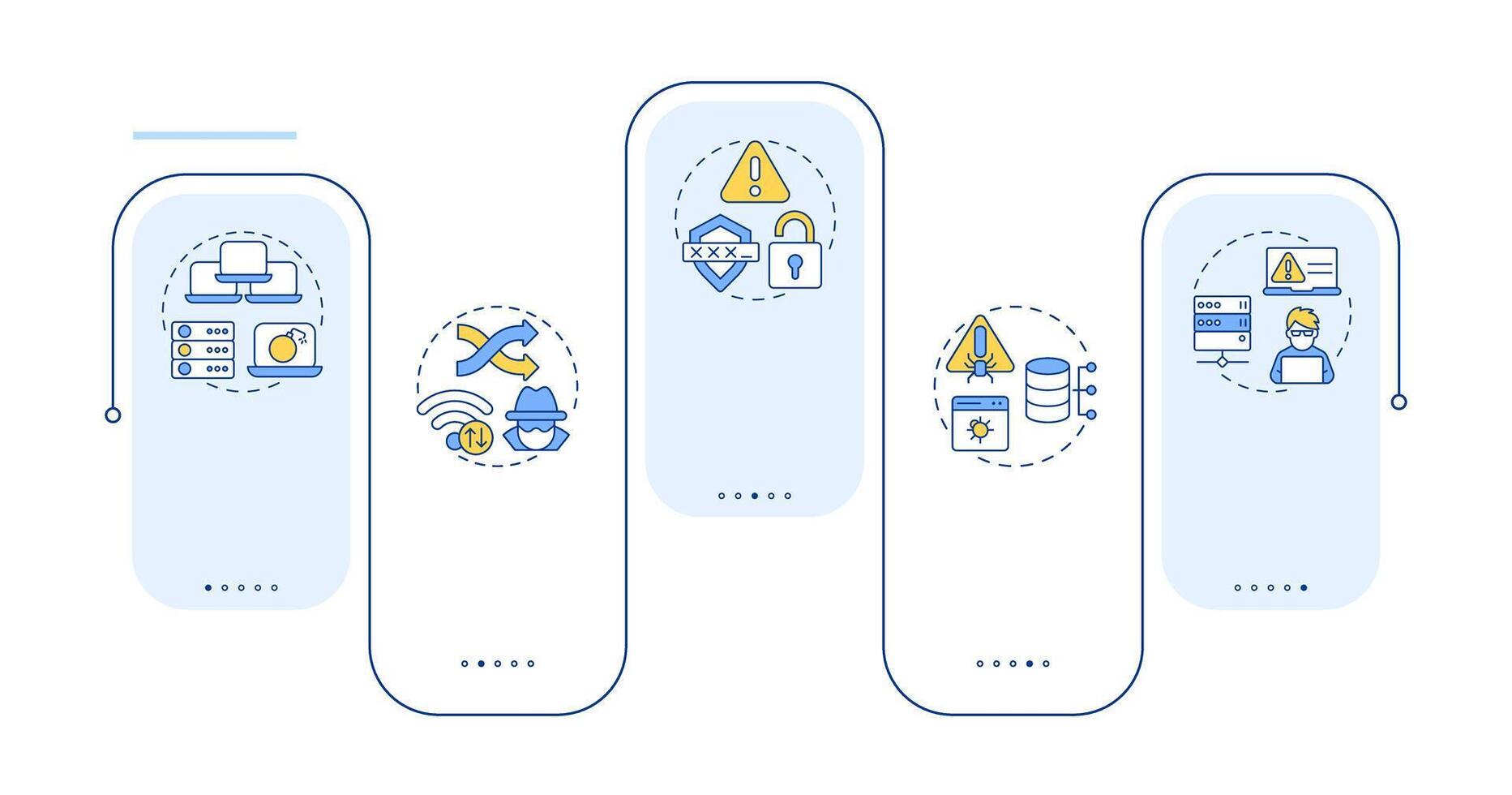 Access control management attack rectangle infographic . Sql injection, ddos attack. Data visualization with 5 steps. Editable rectangular options chart Pro Vector