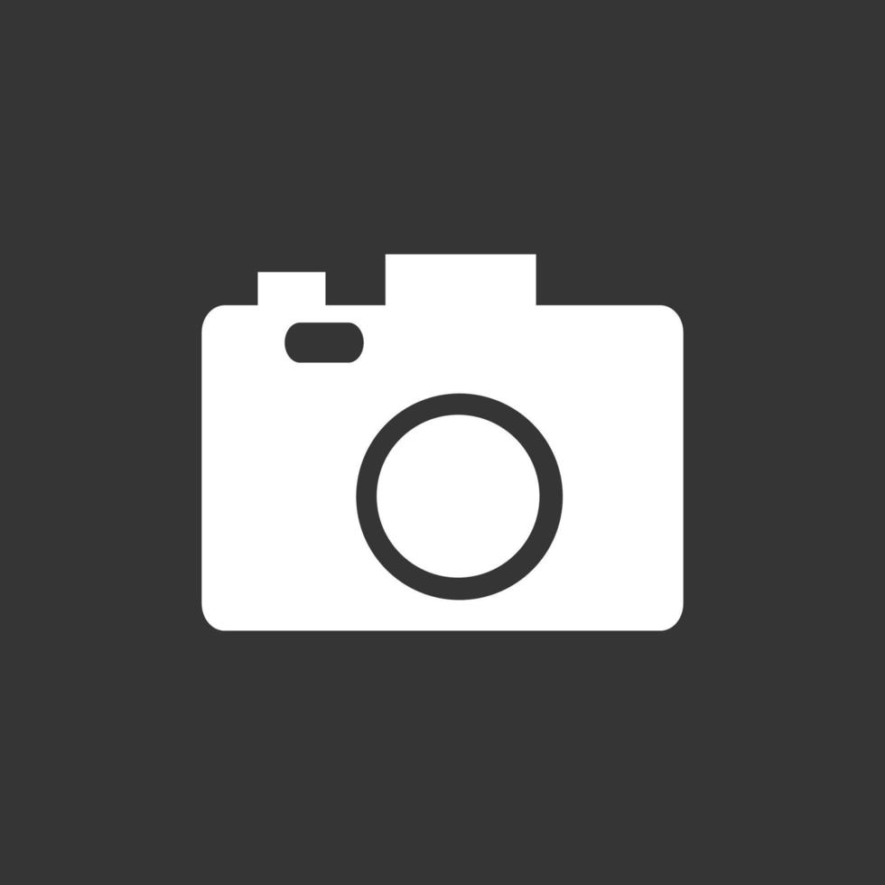 Camera icon, flat photo camera vector isolated on black background. Instant Photo internet concept. Trendy symbol for website design, web button, mobile app. Pro Vector