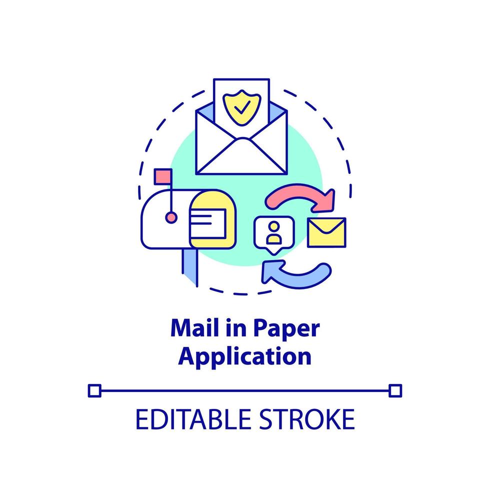 Mail in paper application concept icon. Sending documents. Way to get insurance abstract idea thin line illustration. Isolated outline drawing. Editable stroke. Pro Vector