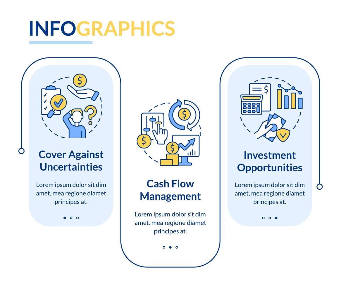 Benefits of insurance service rectangle infographic template. Data visualization with 3 steps. Process timeline info chart. Workflow layout with line icons. Pro Vector