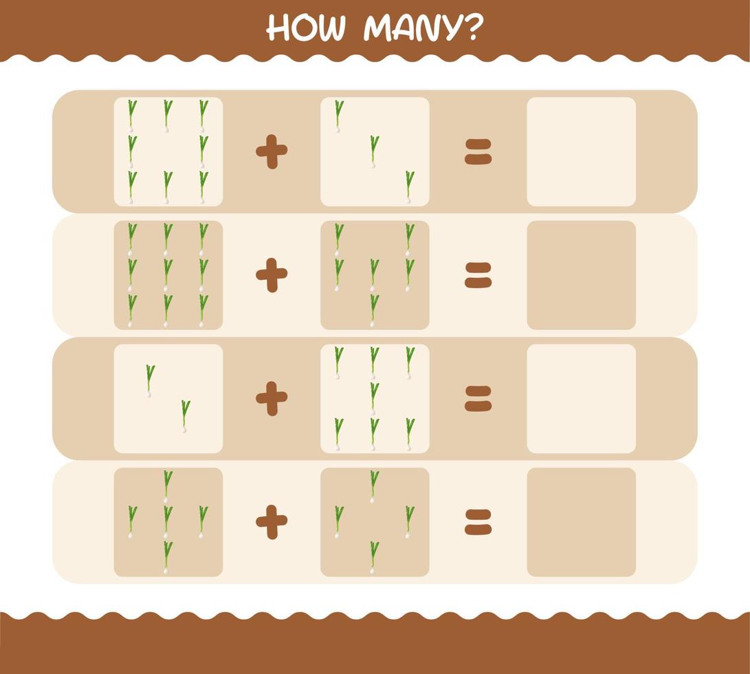 How many cartoon spring onion. Counting game. Educational game for pre shool years kids and toddlers Pro Vector