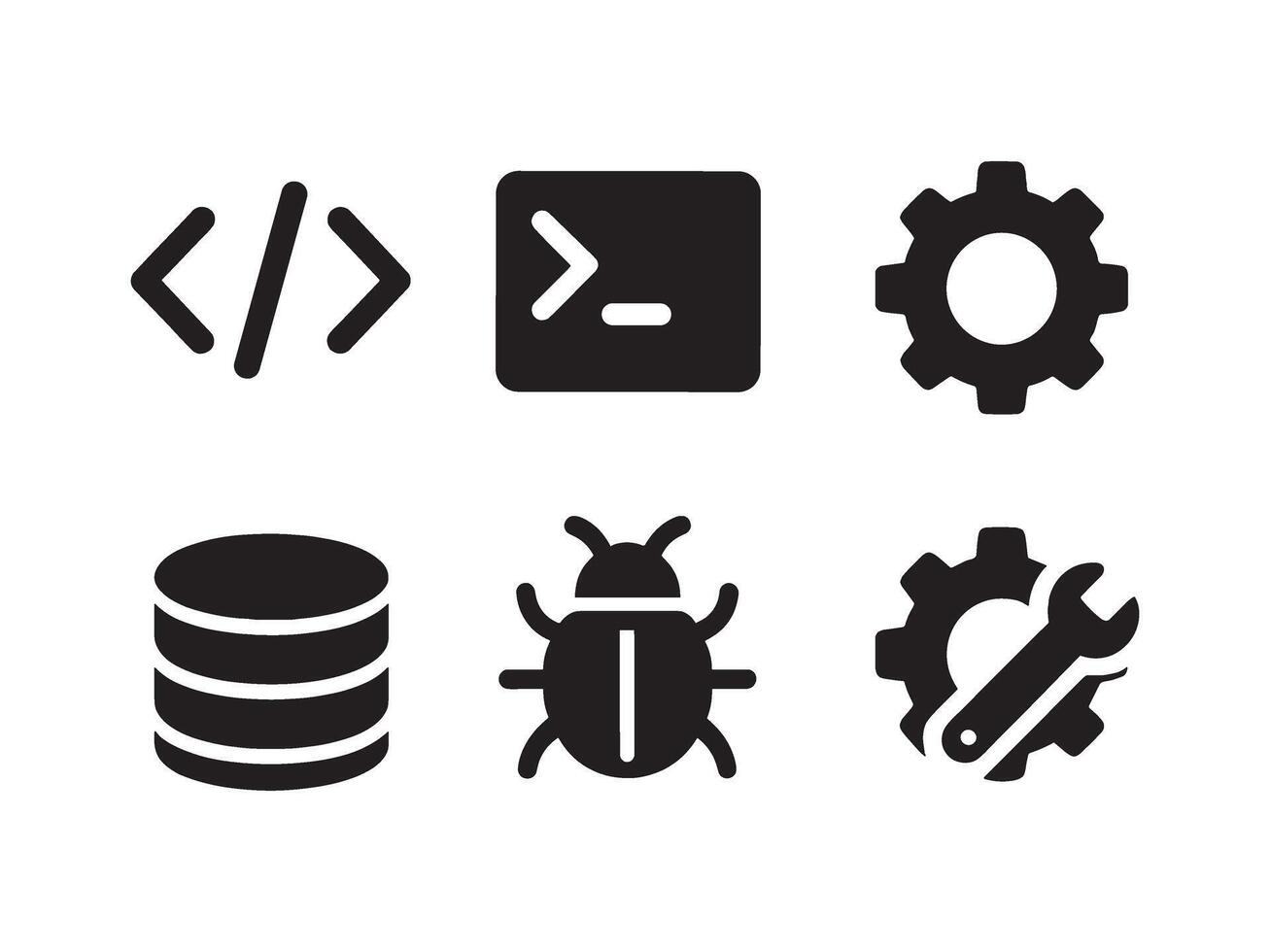 Software Development and Programming Icons with Code, Database, Bug, and Settings Pro Vector