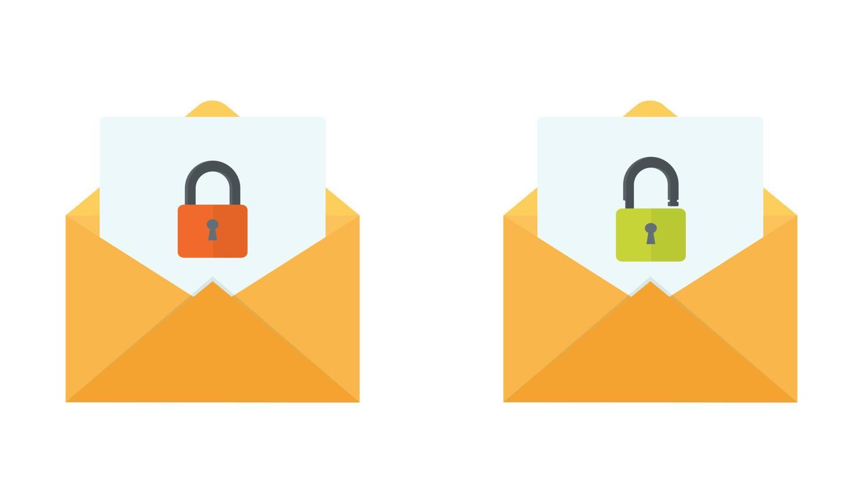 Email lock icon. An open envelope with a lock and unlock icon. Pro Vector