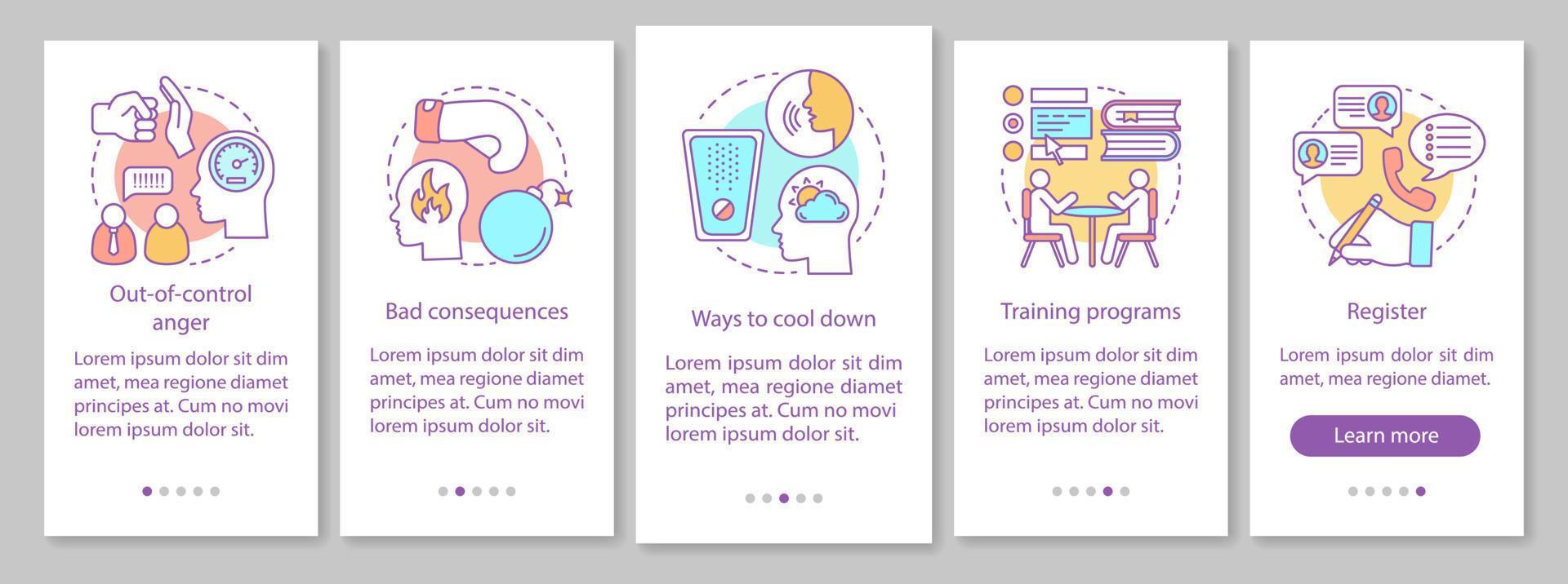 Anger management onboarding mobile app page screen vector template. Stress relief. Emotion control. Consultation with psychologist. Walkthrough website steps. UX, UI, GUI smartphone interface Pro Vector