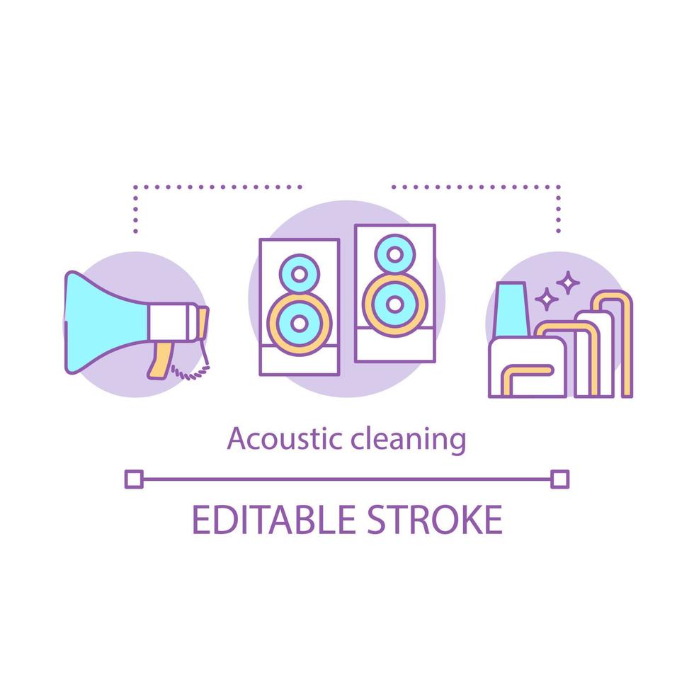 Acoustic cleaning concept icon. Cleanup method idea thin line illustration. Loudspeaker. Generating sound waves. Material handling, storage systems. Vector isolated outline drawing. Editable stroke Pro Vector
