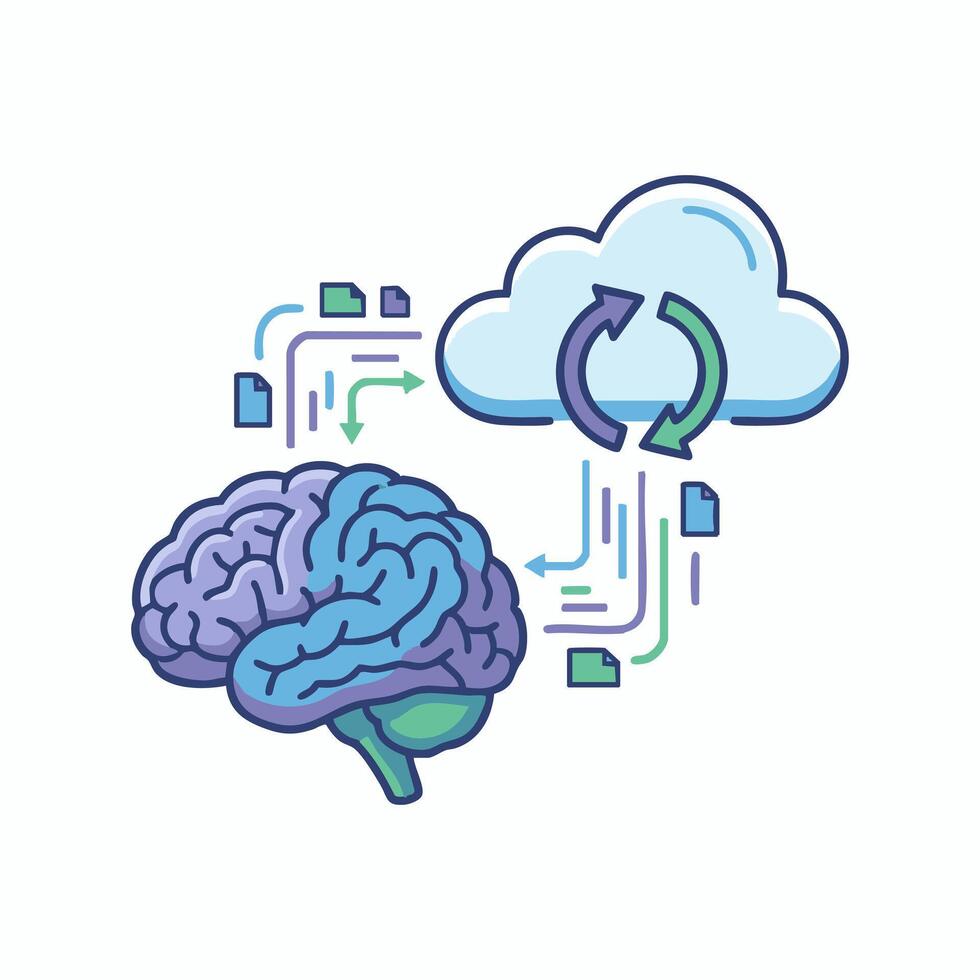 brain syncing data with cloud storage Pro Vector
