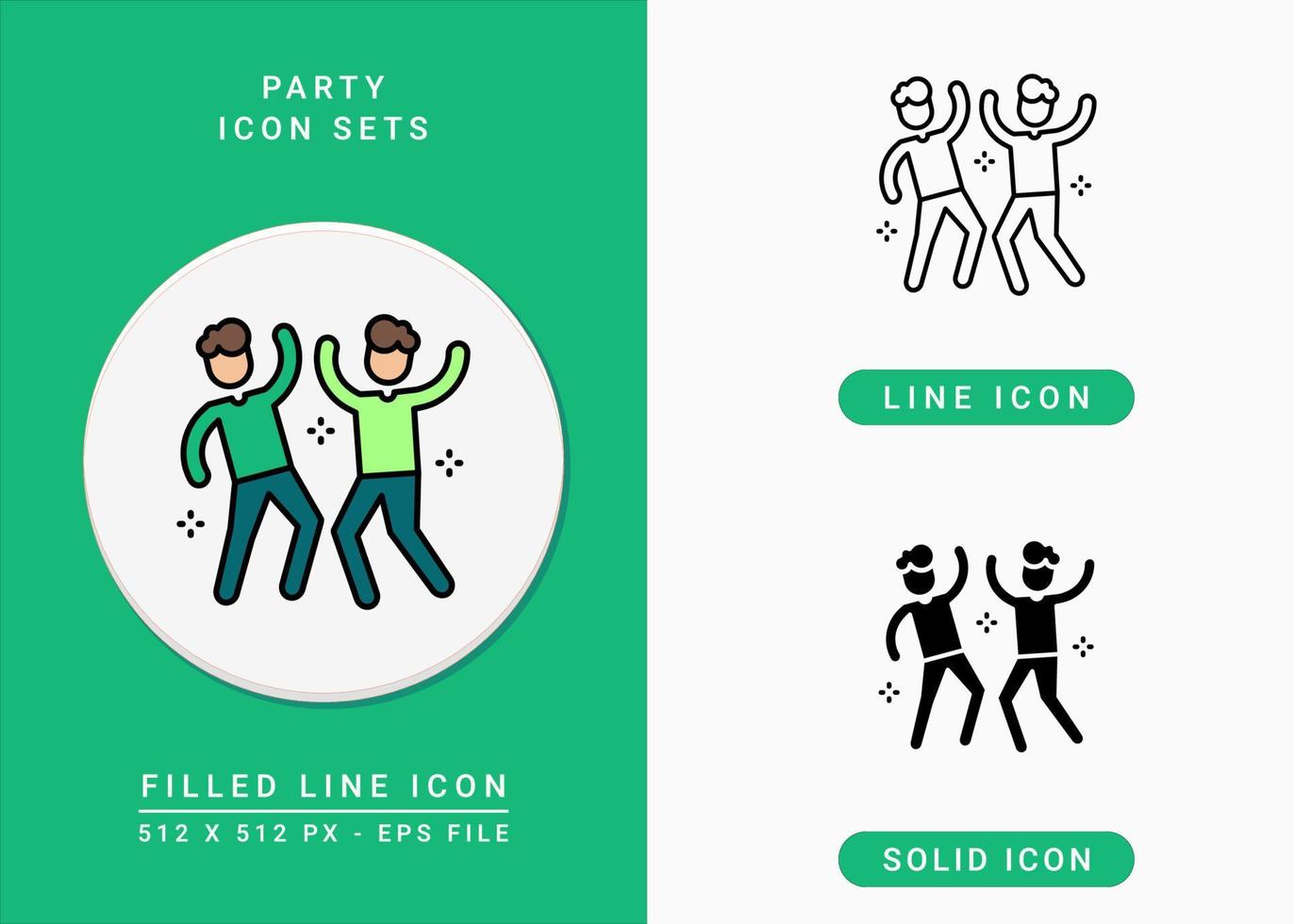 Party icons set vector illustration with solid icon line style. Enjoy hangout symbol. Editable stroke icon on isolated background for web design, infographic and UI mobile app. Pro Vector and Pro SVG