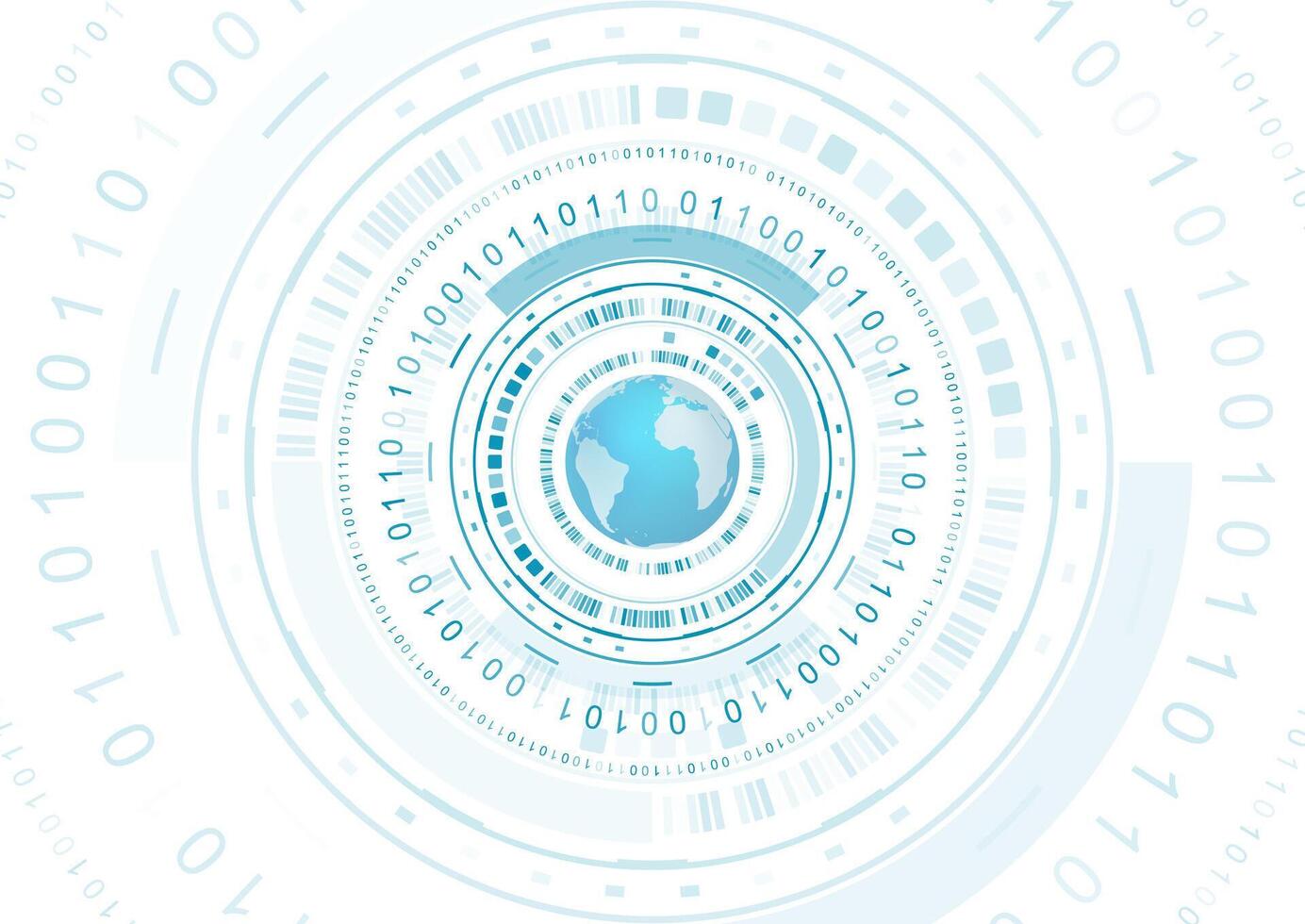 Technological background with globe design, circular elements and binary code Pro Vector
