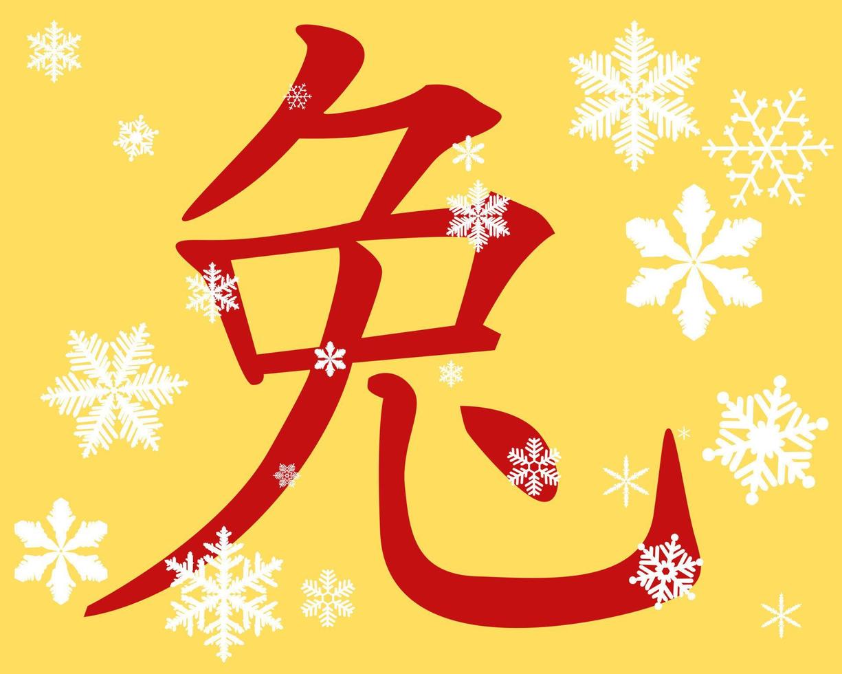 Hieroglyph of year of a rabbit with snowflakes Pro Vector