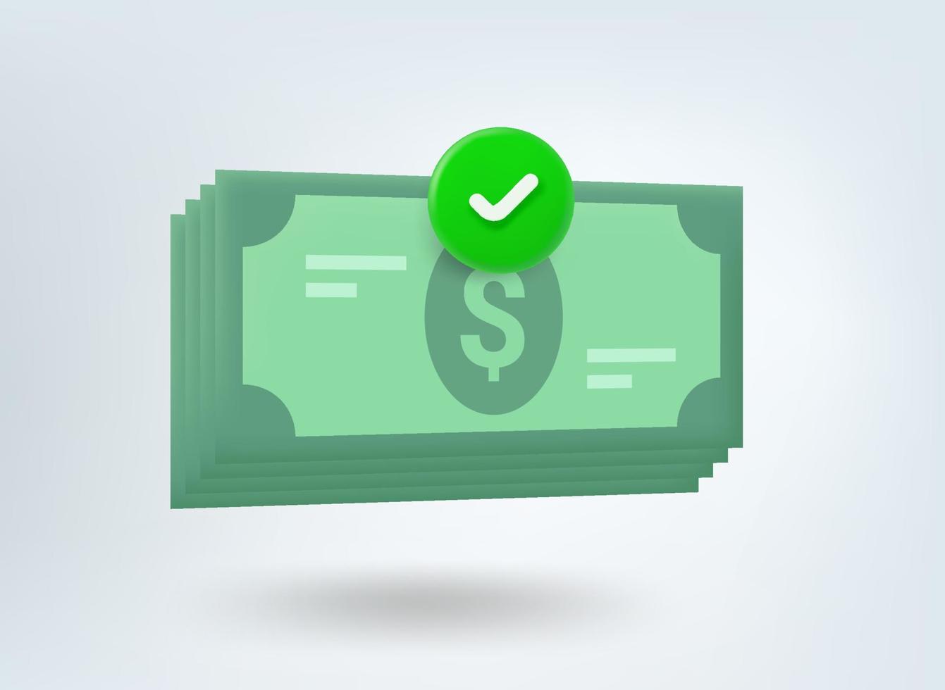 Stack of money with checkmark. 3d vector mobile application icon Pro Vector