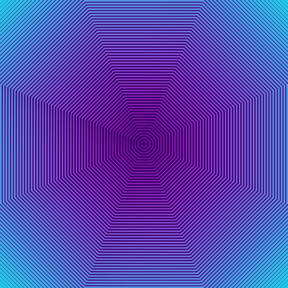 Abstract neon background. Retro 1980 style bright geometric background. Synthwave sci-fi backdrop. Concentric lines. Optical illusion vector illustration. Easy to edit template for your design. Pro Vector