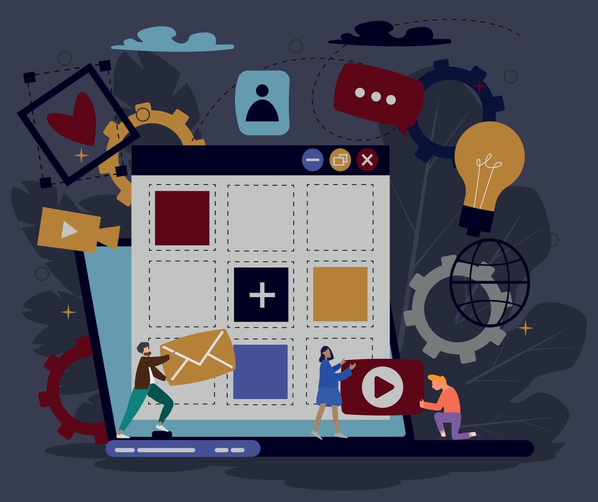 vector illustration of a team working on making an application display on a laptop Free Vector