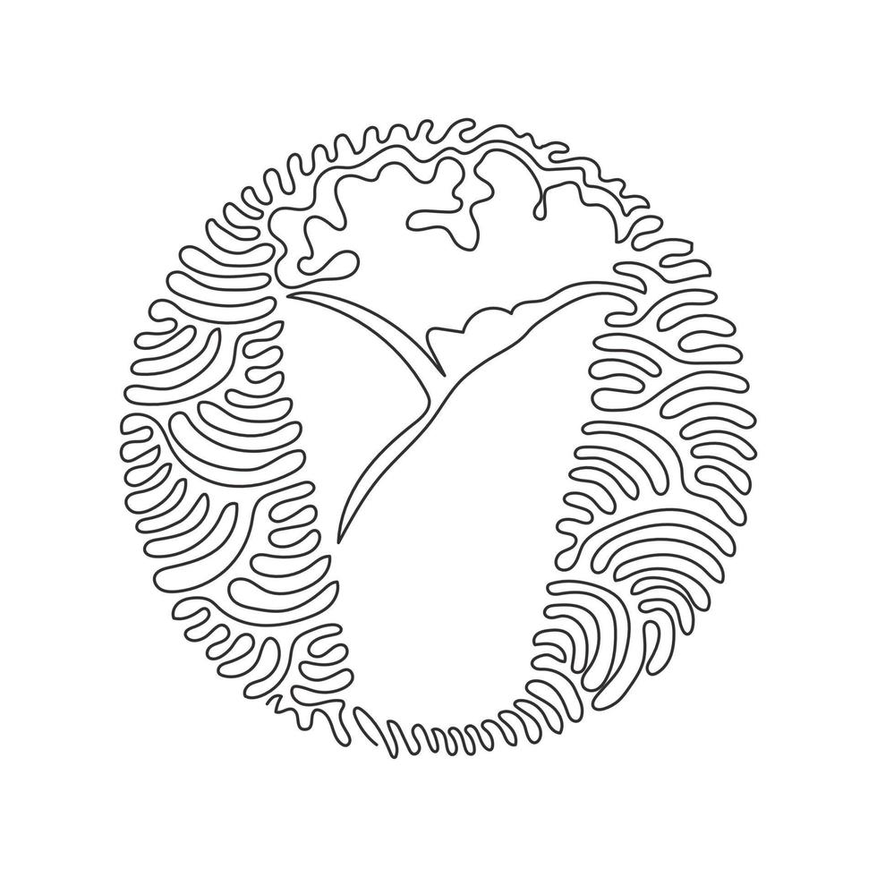 Single one line drawing shawarma or chicken wrap. Turkish fast food with meat and vegetables. Meal on grill of shawarma. Swirl curl circle background style. Continuous line draw design graphic vector Pro Vector