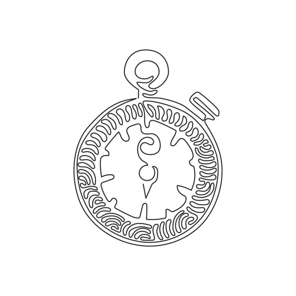 Continuous one line drawing Stopwatch line and solid icon. Timer illustration. Sport watch chronometer. Trendy style. Swirl curl style concept. Single line draw design vector graphic illustration Pro Vector