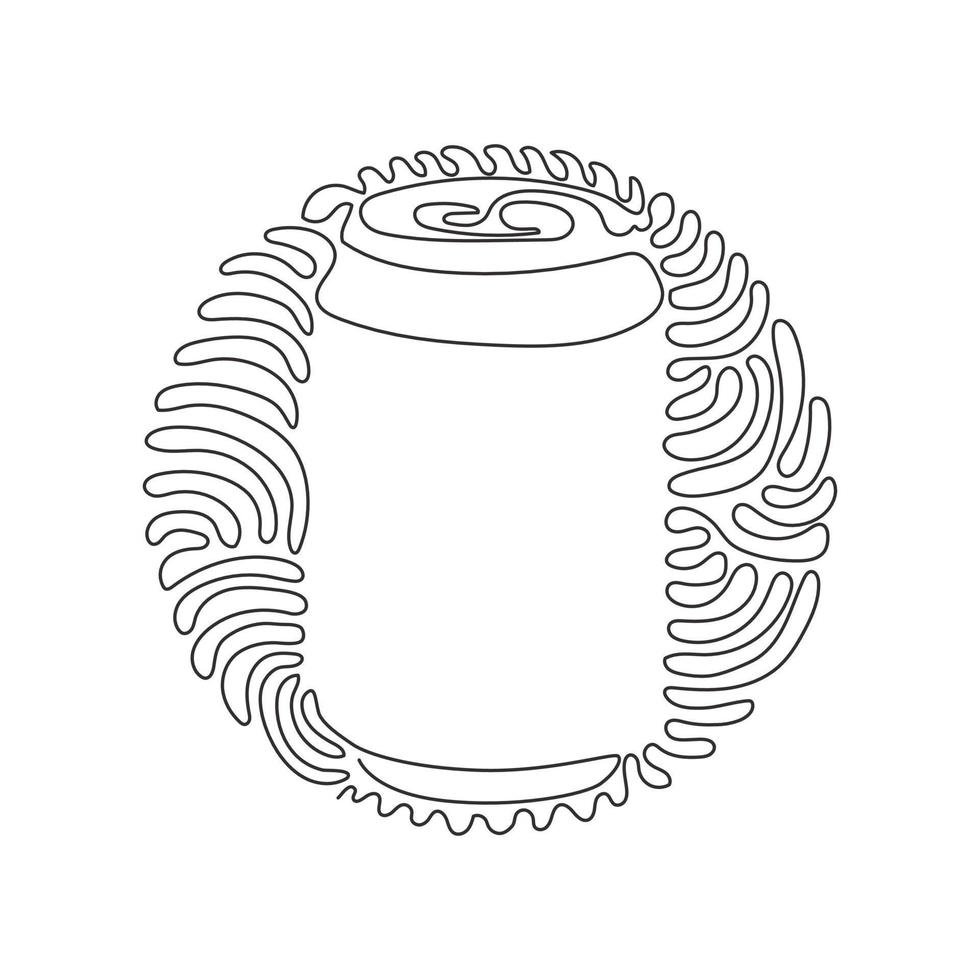 Single one line drawing cola soda in aluminum can. Cold soft drink to crave for refreshing feeling. Swirl curl circle background style. Modern continuous line draw design graphic vector illustration Pro Vector