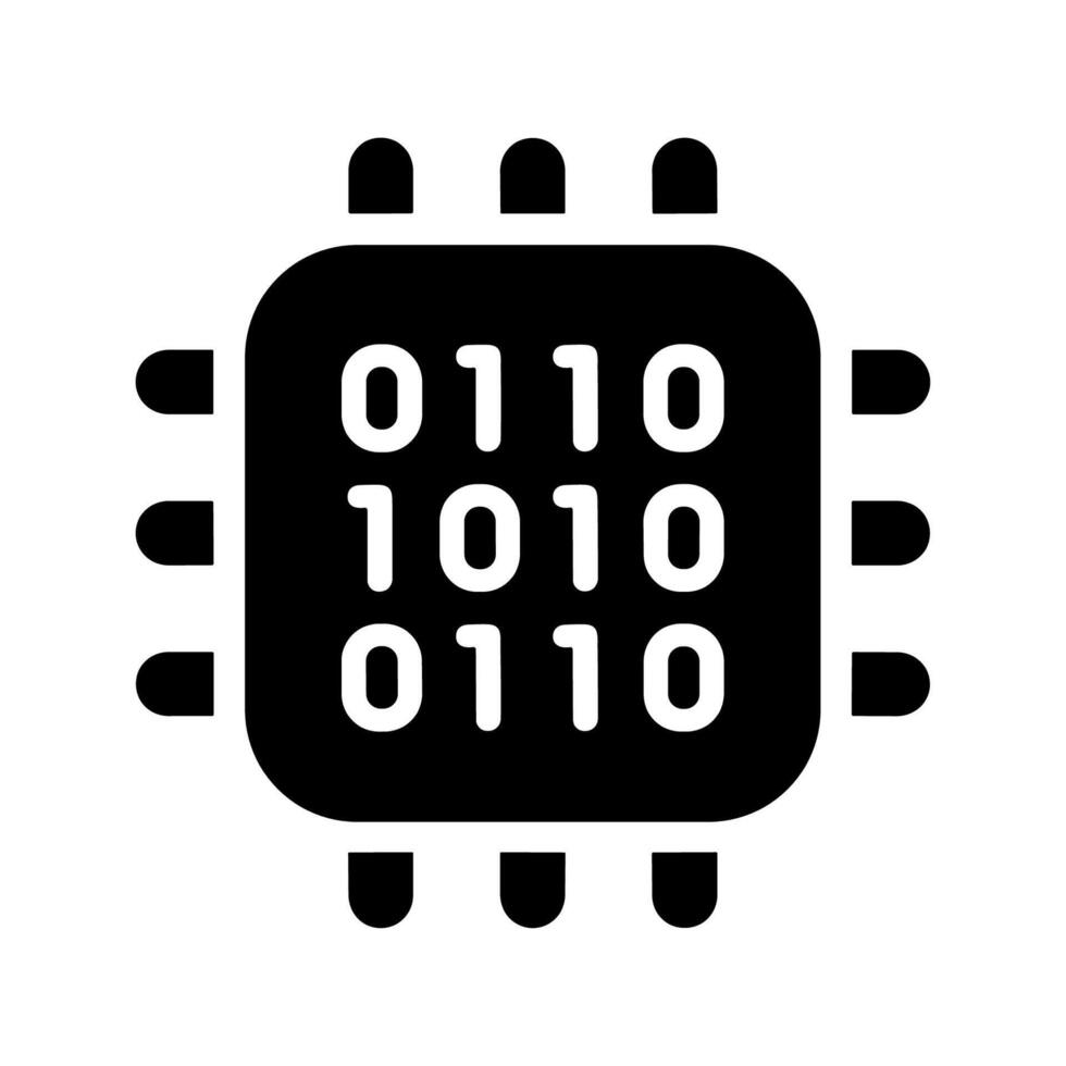 Solid Computer Microchip Binary Code Processor Technology Symbol Icon Pro Vector
