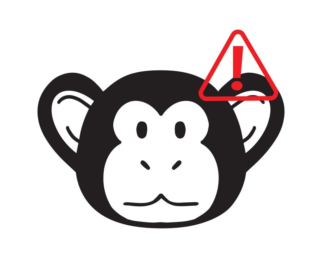Vector illustration of monkey icon with red exclamation point - symbol of danger and alertness. new Monkeypox 2022 virus in simple flat style isolated on white background Pro Vector