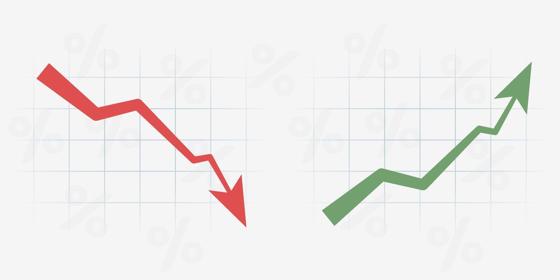 Chart arrows up and down. Green and red arrows. Decrease and increase graph illustration vector