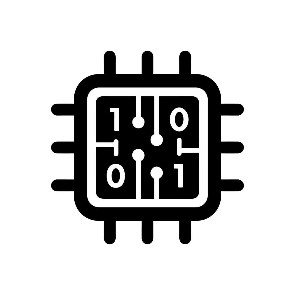 Flat Isolated Microchip Processor with Binary Code Icon Symbol Pro Vector