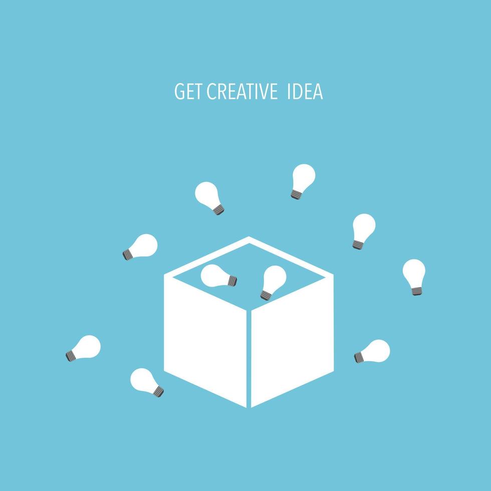 Light bulbs floating out of the minimalist box, think outside the box concept. Pro Vector