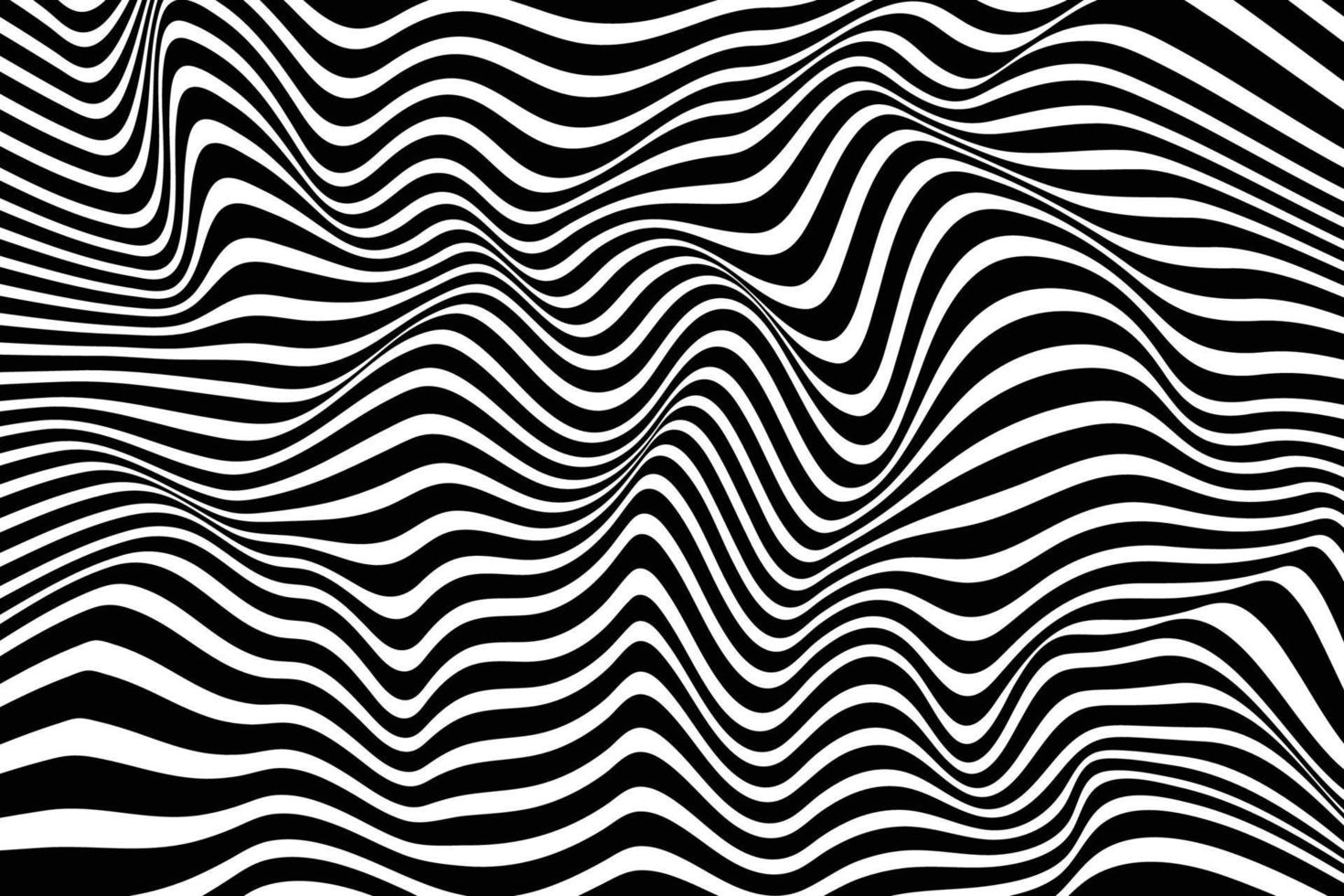 Abstract black and white striped wave background. Stylish curved stripes pattern surface. Optical illusion art. Digital geometric wavy zebra background texture Pro Vector