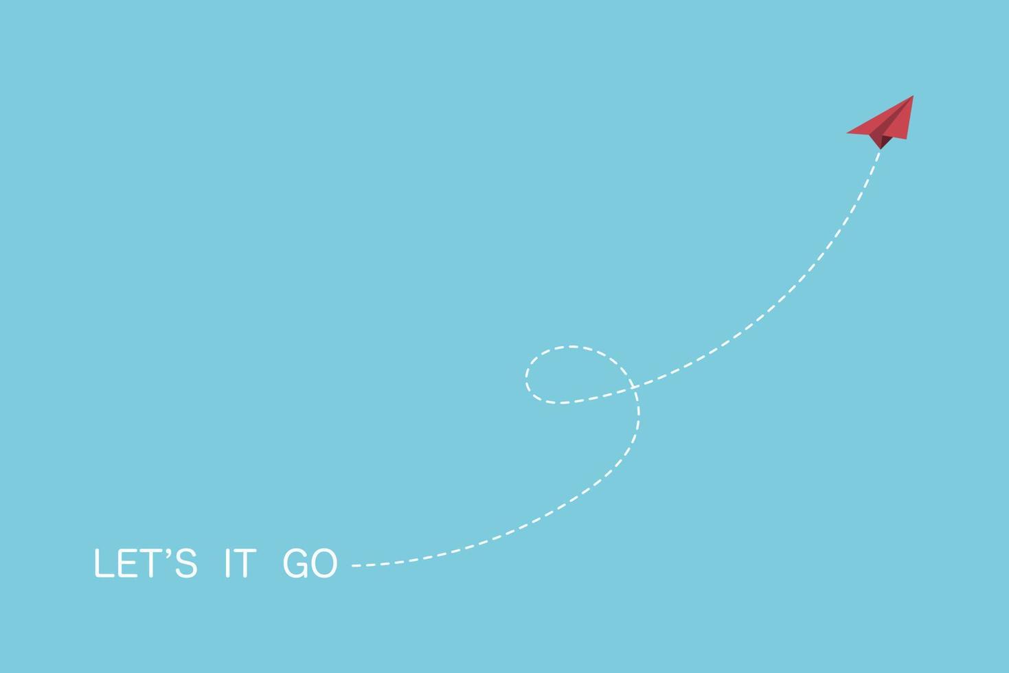 Lets it go, a red paper plane flying different way from white paper planes. Business concept minimalist style. Pro Vector