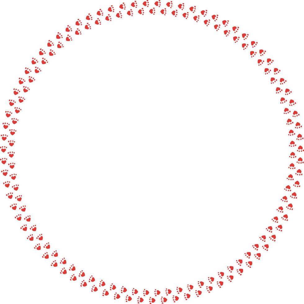 Round frame of red cat tracks. Isolated frame on white background for your design. Pro Vector