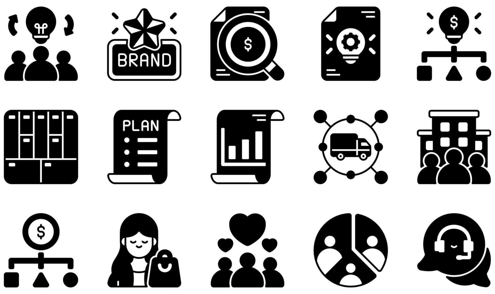 Set of Vector Icons Related to Business Model. Contains such Icons as Brand, Business Analyze, Business Idea, Business Plan, Customer, Customer Segment and more. Pro Vector