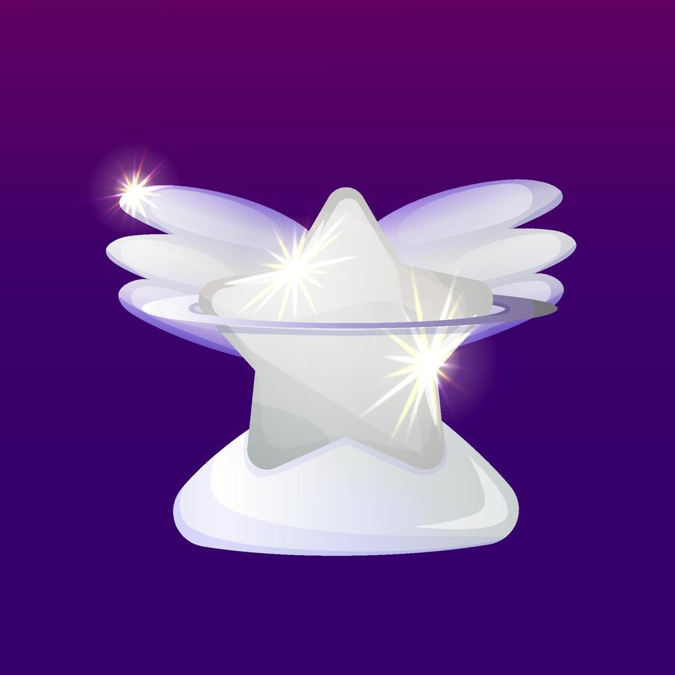 Game rank, star rating for completing levels. Silver star with wings for game ui design. Cartoon vector illustration. Level up prize Pro Vector
