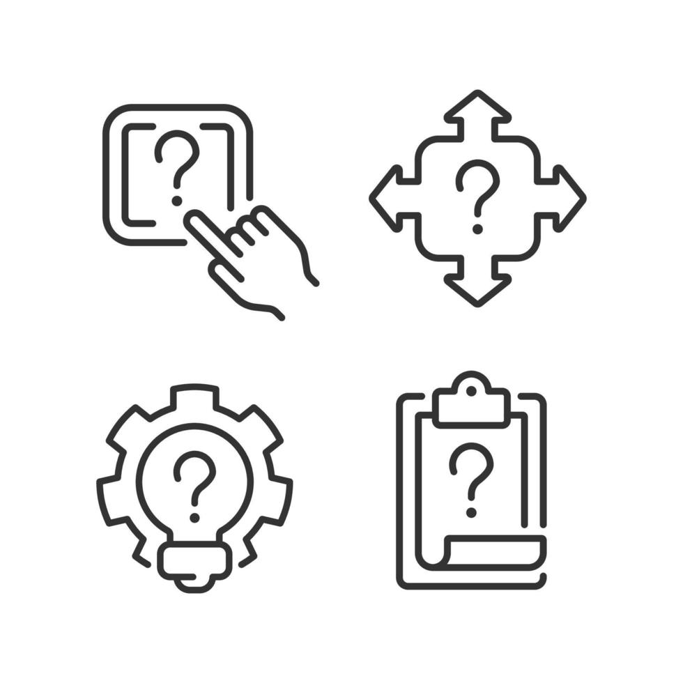 Questions and answers in technical support linear icons set. Digital data storage. Access to information. Customizable thin line symbols. Isolated vector outline illustrations. Editable stroke Pro Vector