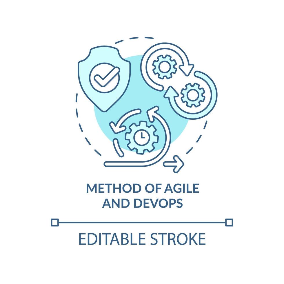 Method of Agile and DevOps turquoise concept icon. Tech macro trends abstract idea thin line illustration. Isolated outline drawing. Editable stroke. Pro Vector