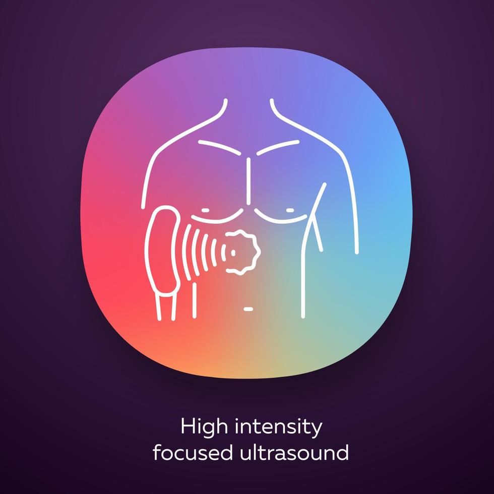 High intensity focused ultrasound app icon. HIFU. Non-invasive therapeutic technique. Treatment by ultrasonic waves. UI UX user interface. Web or mobile application. Vector isolated illustration Pro Vector