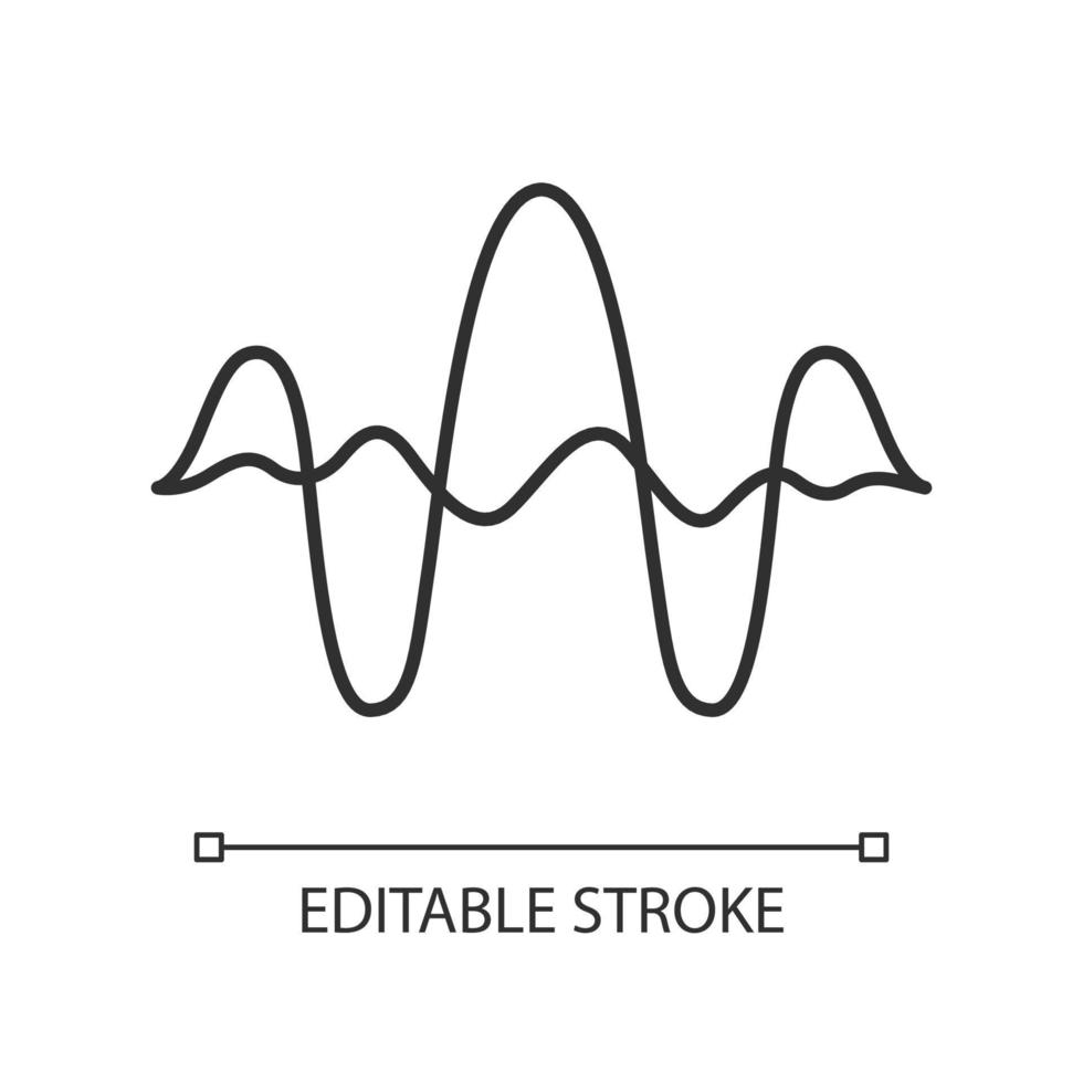 Overlapping curves, waves linear icon. Thin line illustration. Vibration, noise amplitude level. Music frequency. Digital soundwaves. Contour symbol. Vector isolated outline drawing. Editable stroke Pro Vector