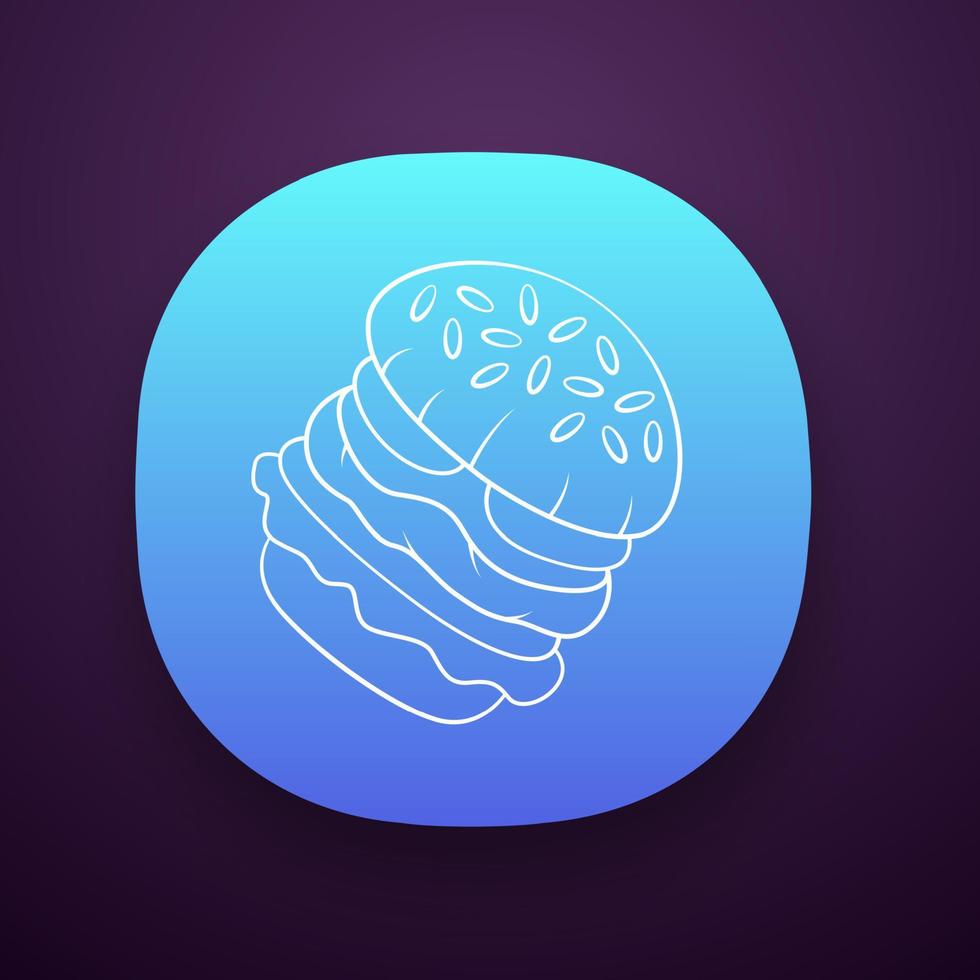 Burger app icon. Fast food cafe, restaurant, snack bar menu. Hamburger, cheeseburger, vegan burger. Patty and sesame bun. UI UX user interface. Web or mobile application. Vector isolated illustration Pro Vector
