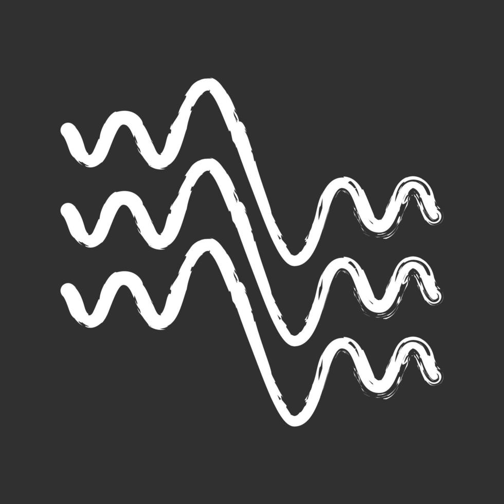 Flowing wavy lines chalk icon. Fluid parallel soundwaves. Sound and audio waves. Abstract organic waveforms. Vibration amplitude. Motion, dynamic effect. Isolated vector chalkboard illustration Pro Vector