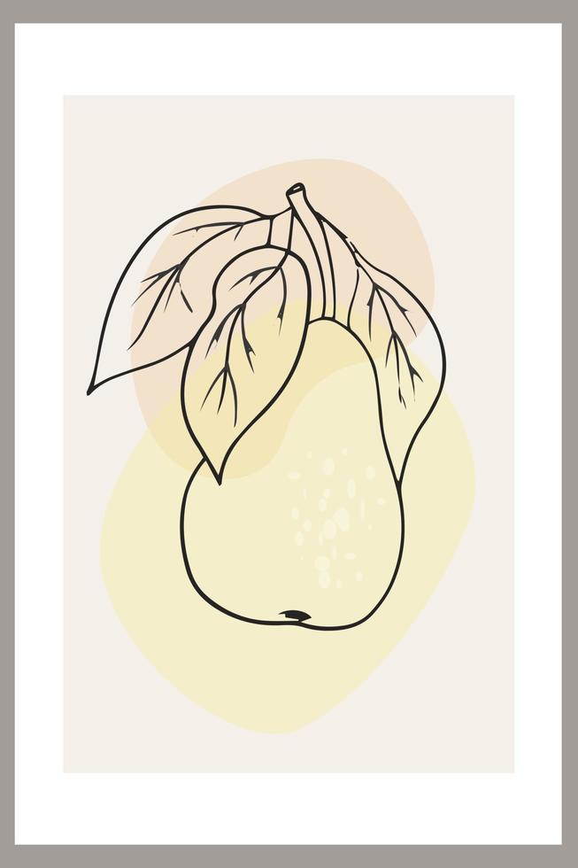 Pear on a branch with leaves. Template with abstract composition, linear fruit art Pro Vector